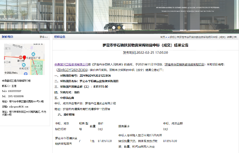 • 羅定市華石鎮扶貧物資采購項目中標(成交)結果公告 2022-02-25